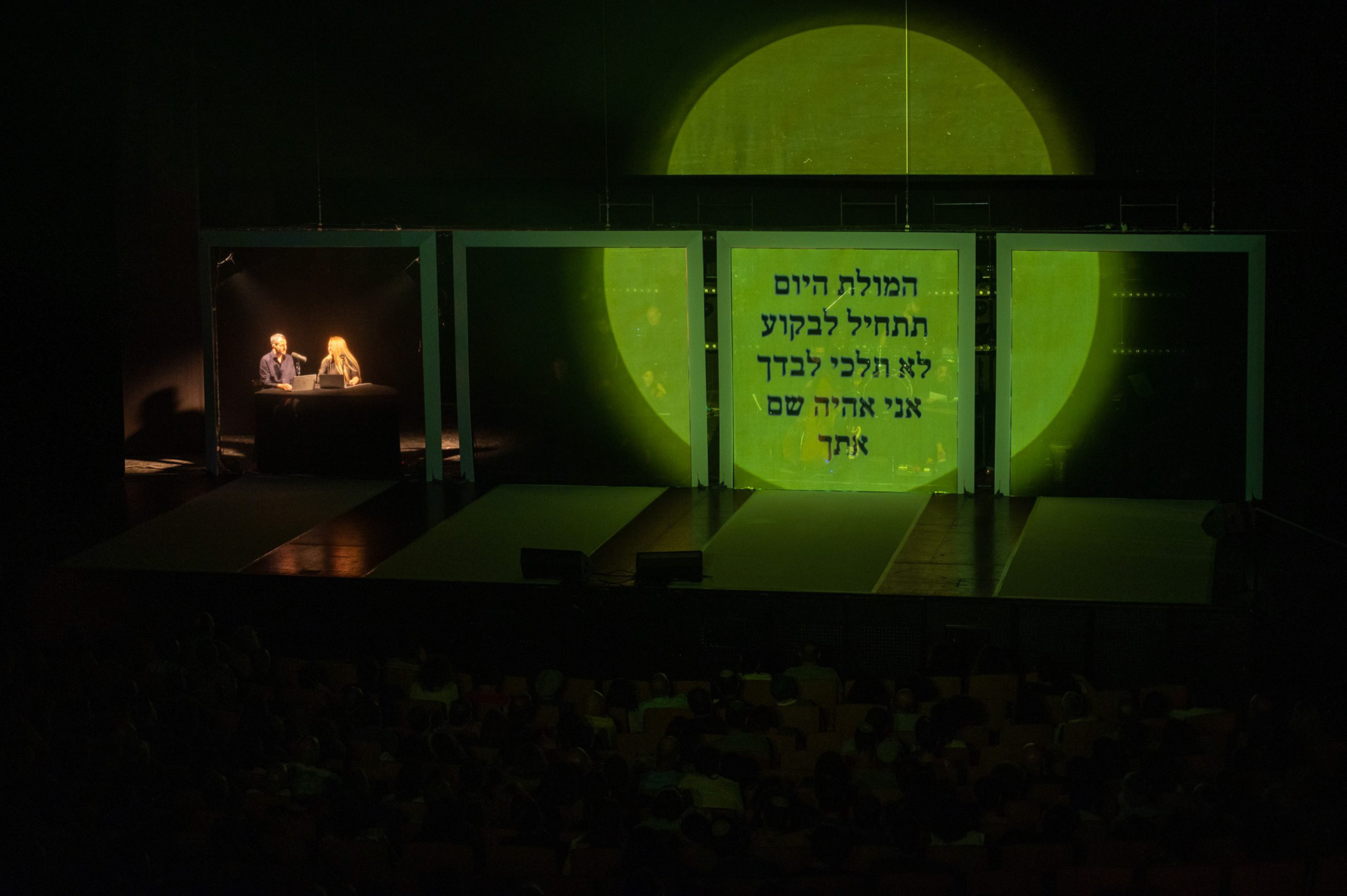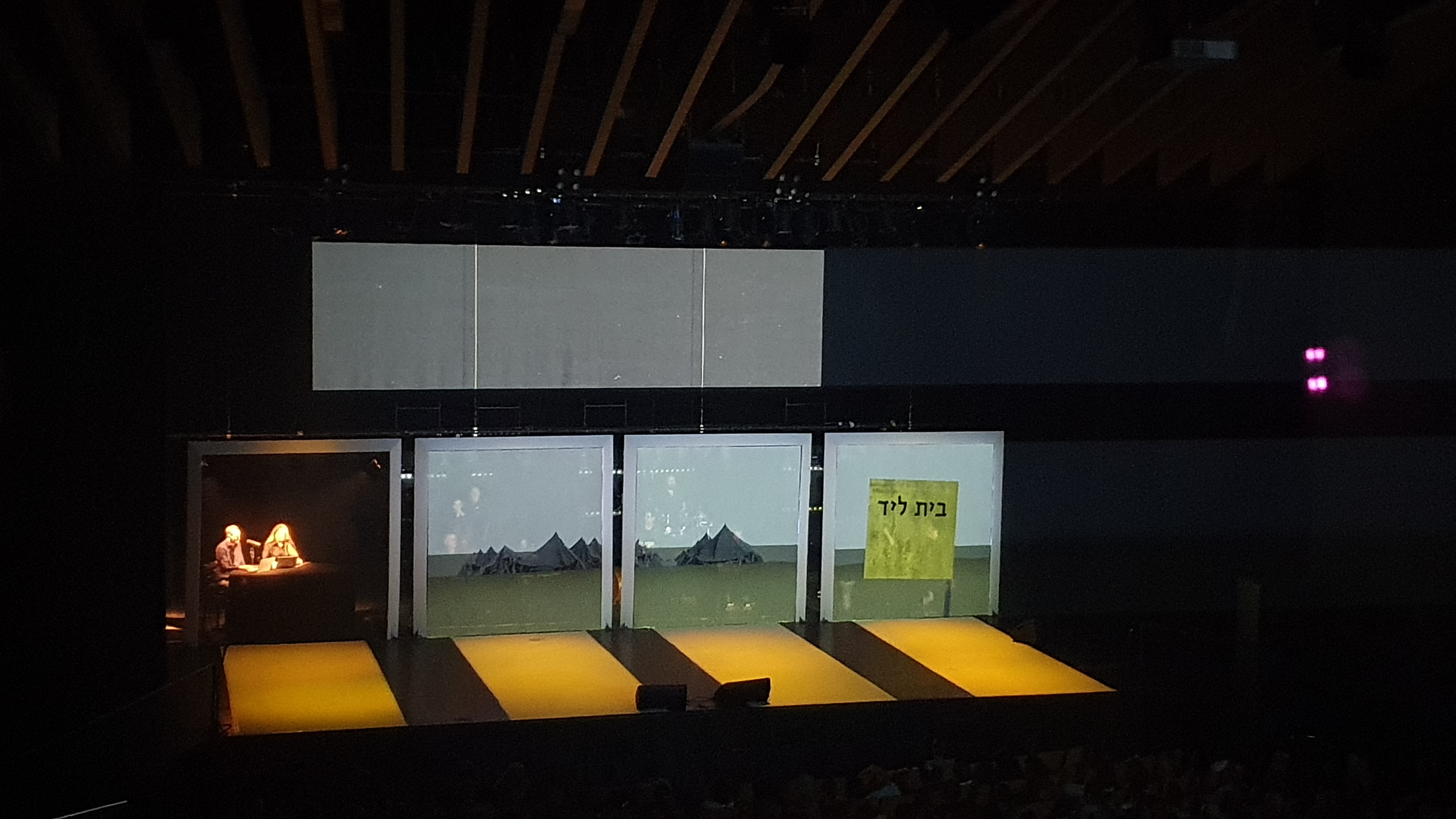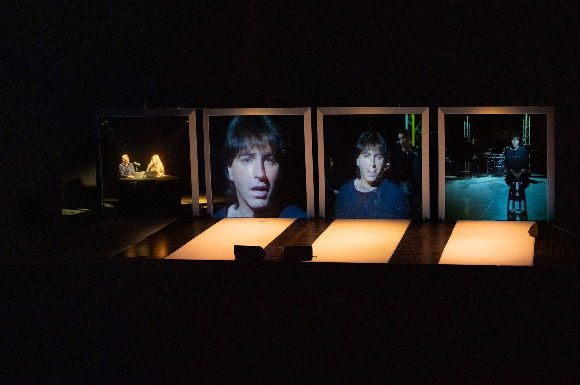 5 screen video installation for a stage production of the podcast "one song". The Israel Festival, August 2023 Director: Yonatan Blumenfeld